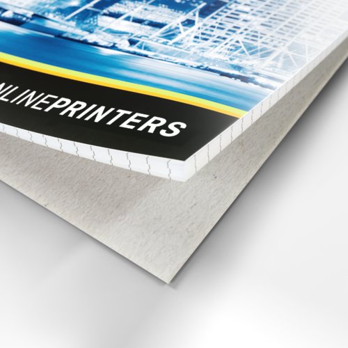 - Vorderseite vierfarbig bedruckt, Rückseite unbedruckt (4/0)
