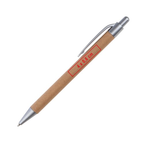 - Kugelschreiber aus recycelter Pappe mit silberfarbenen Applikationen und blauschreibenden Minen