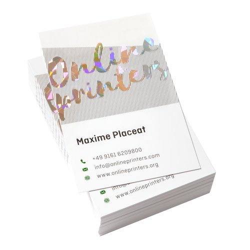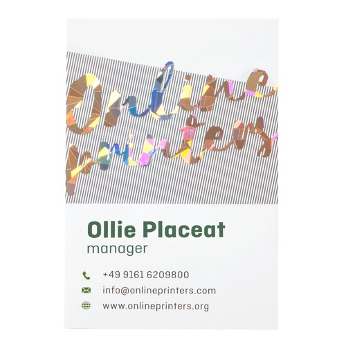 Druckdatenhinweise Visitenkarten mit partieller Heißfolienprägung, 5,5 x 5,5 cm, beidseitig bedruckt
